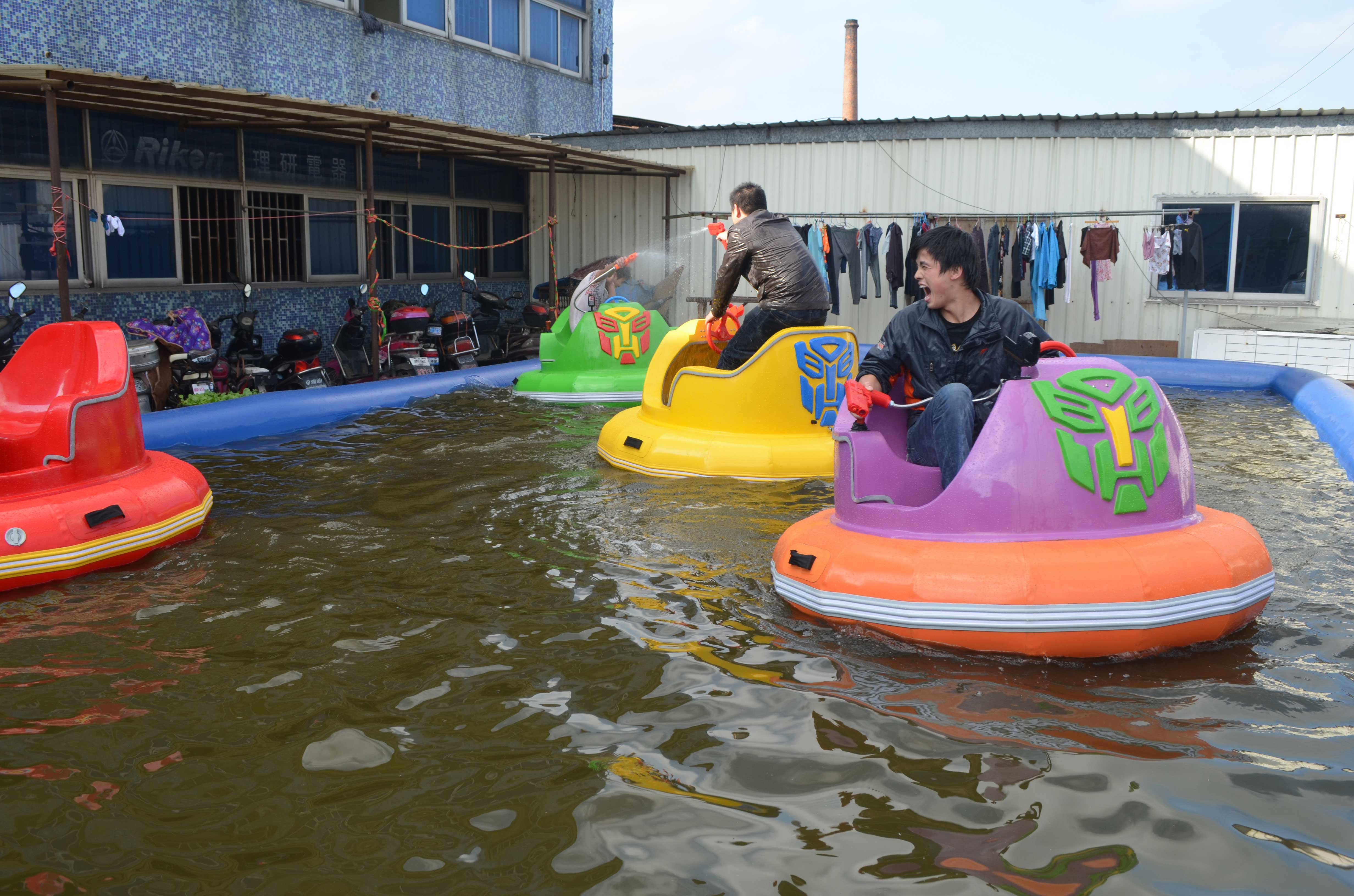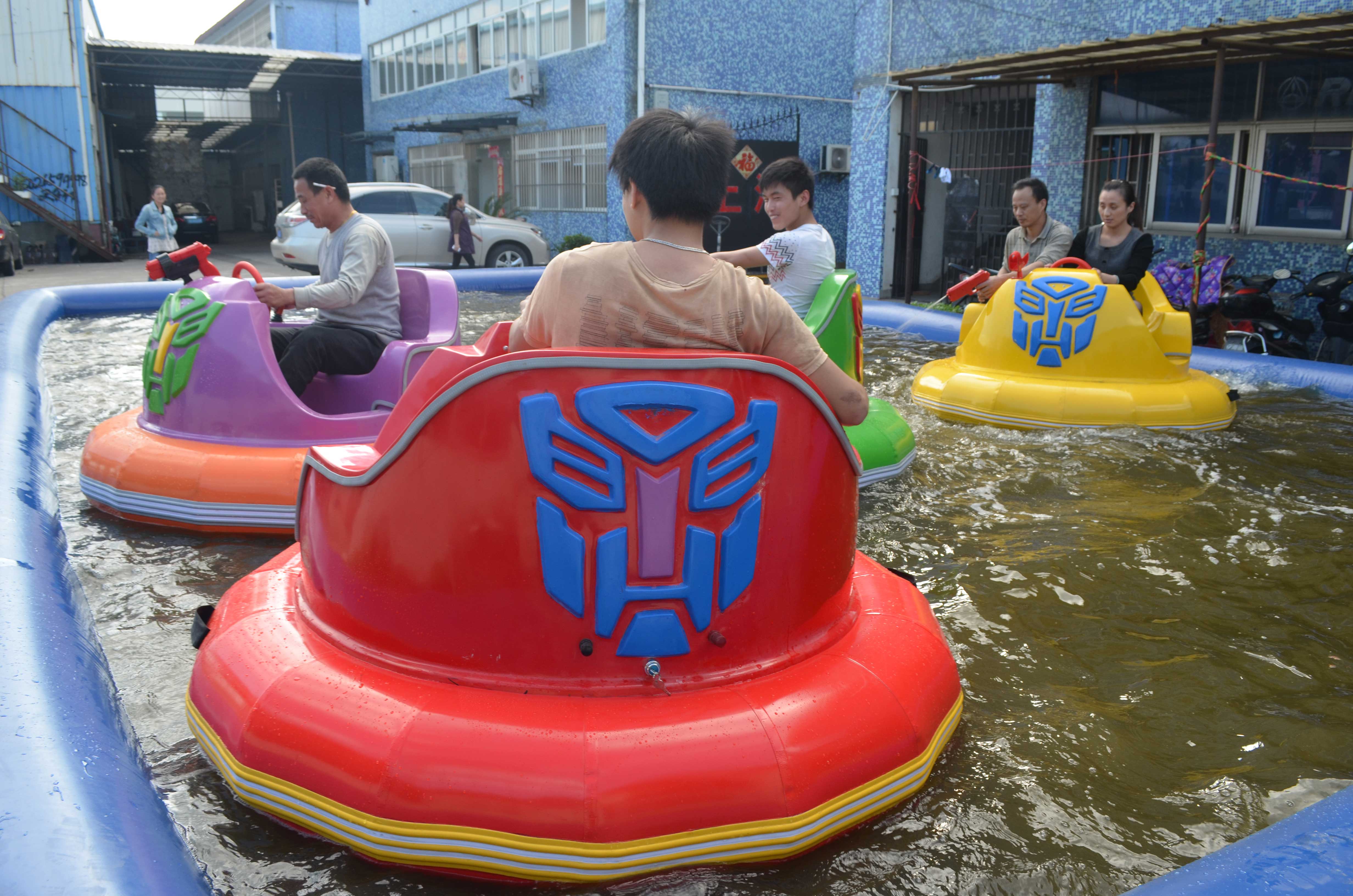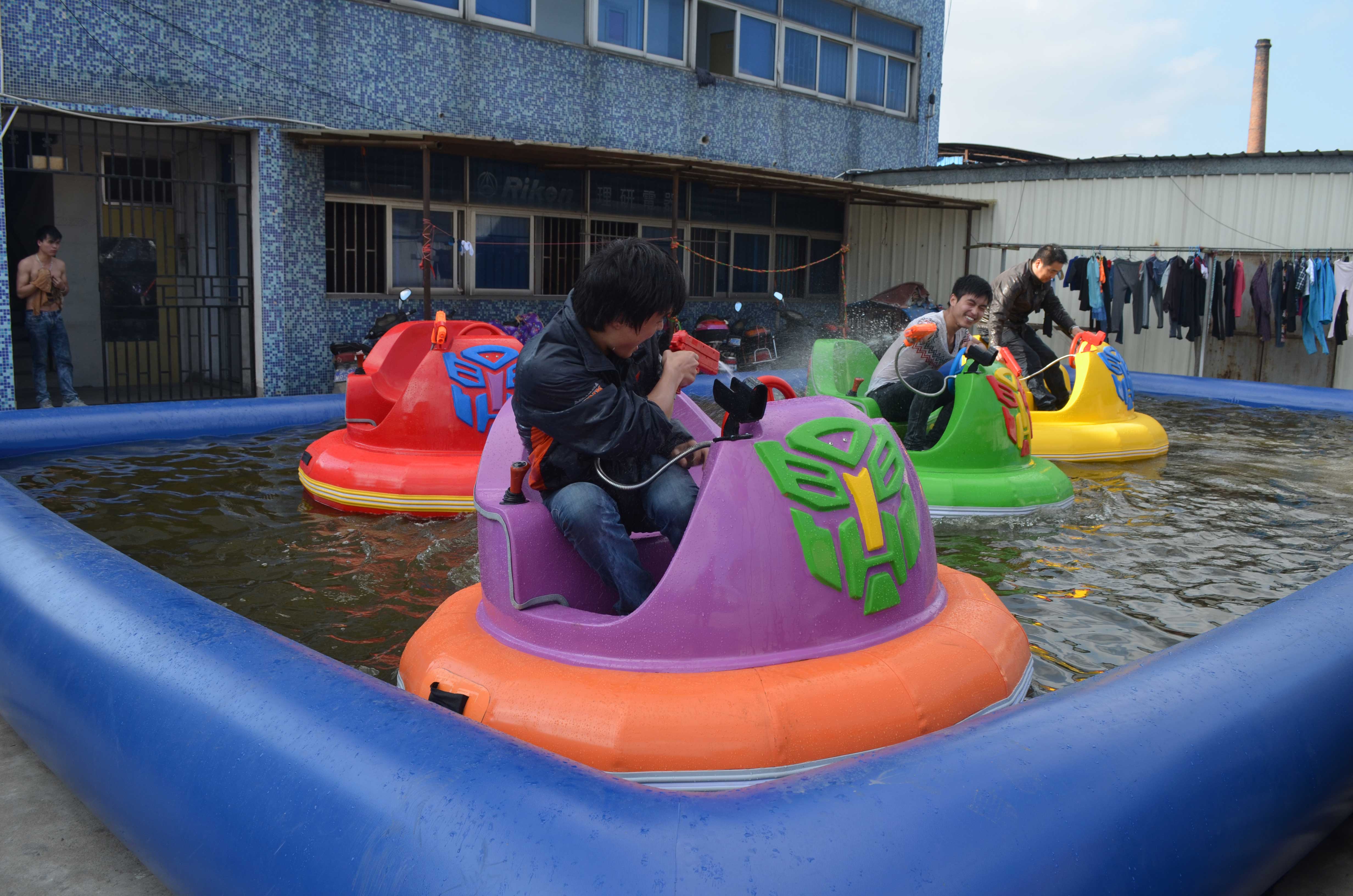 產(chǎn)品介紹: 金剛碰碰船是繼普通碰碰船后研發(fā)制造,其造型美觀,性能卓越,參與感強(qiáng),PVC外胎使得碰撞更加刺激,行進(jìn)中伴有高保真音響系統(tǒng)及多邊的燈光,還有自創(chuàng)的一體式激光槍水槍,采用進(jìn)口12V壓力強(qiáng)水泵,可以噴出12-15米水柱,天熱時(shí)激光槍水槍可以同時(shí)使用 ,天冷時(shí)可以吧水槍關(guān)閉,只使用激光槍擊打水雷,當(dāng)擊中水雷時(shí),水雷會(huì)發(fā)出爆炸的聲音,同時(shí)發(fā)出語(yǔ)音“你真棒,再來(lái)一槍”,水槍的自由對(duì)戰(zhàn)更加吸引小朋友,趣味性極強(qiáng)。